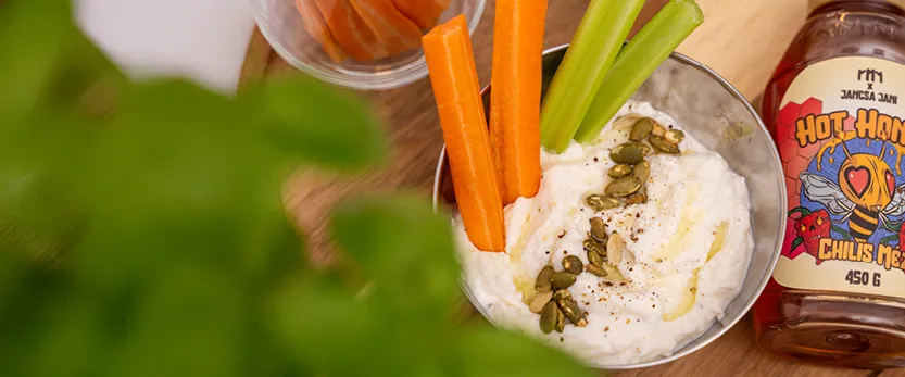 Pikáns Hot Honey ricotta: villámgyors, egészséges mártogatós zöldségekkel